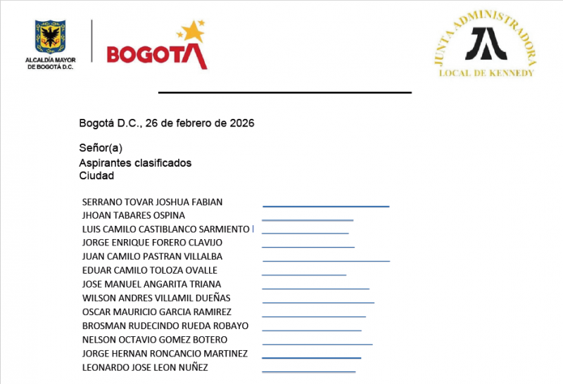 Notificación e invitación a sesión Proceso de conformación de terna para Alcalde(sa) Local de Kennedy